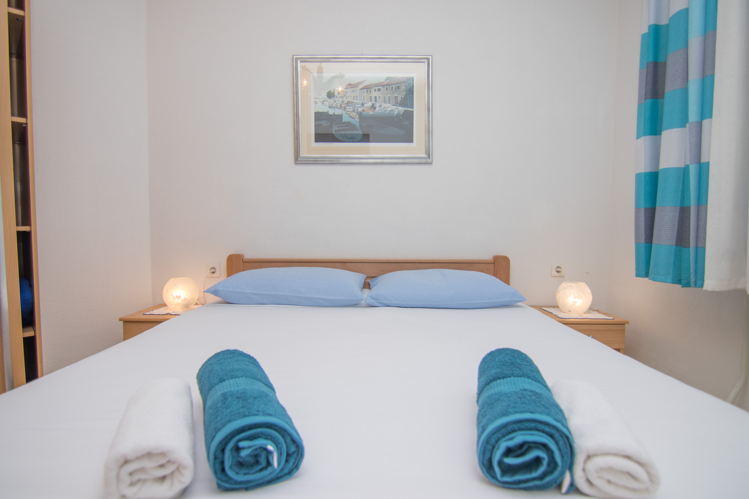 This apartment is s accommodation in the City of Krk on second floor of the house. It is 38 m2 big. It has two balconies, kitchen and two double beds. The apartment has sea view. It is equipped with all th