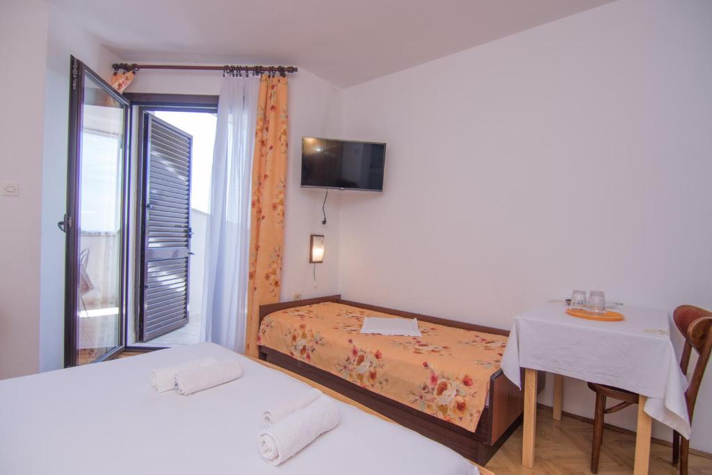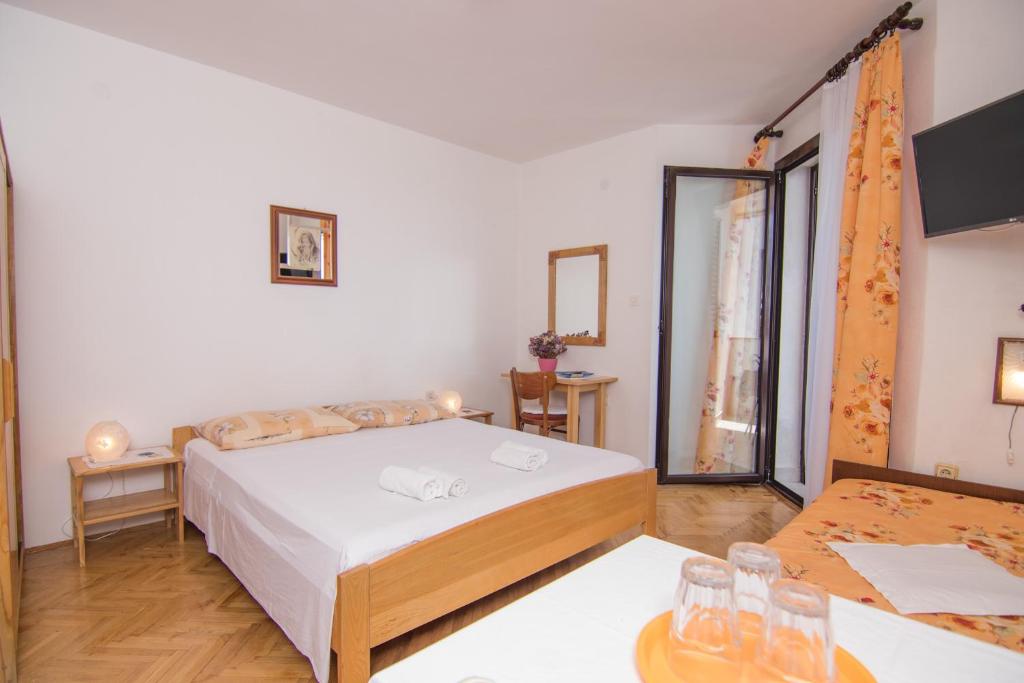 This studio is cozy accommodation on second floor of the house. It is 30 m2 big. It has small kitchen and terrace with sea view. It is equipped with all the needed comforts for a pleasant stay, including air conditioning, WI-FI and satellite TV. In the kitchen you have water cooker and all the basic necessities. If you want to relax in accommodation in quiet environment and excellent central location with sea view this is the right choice for you. Do not hesitate to contact us for more information. We are always within reach.